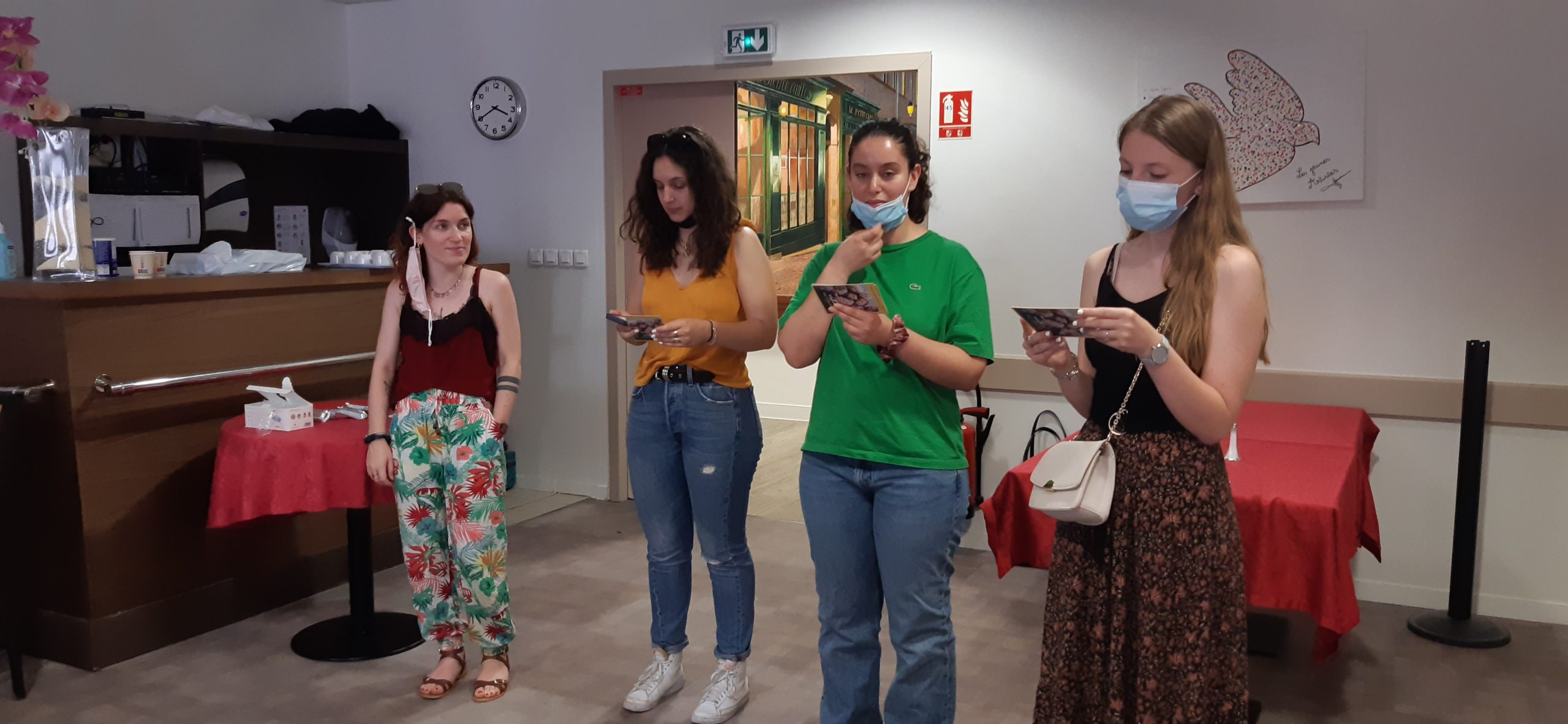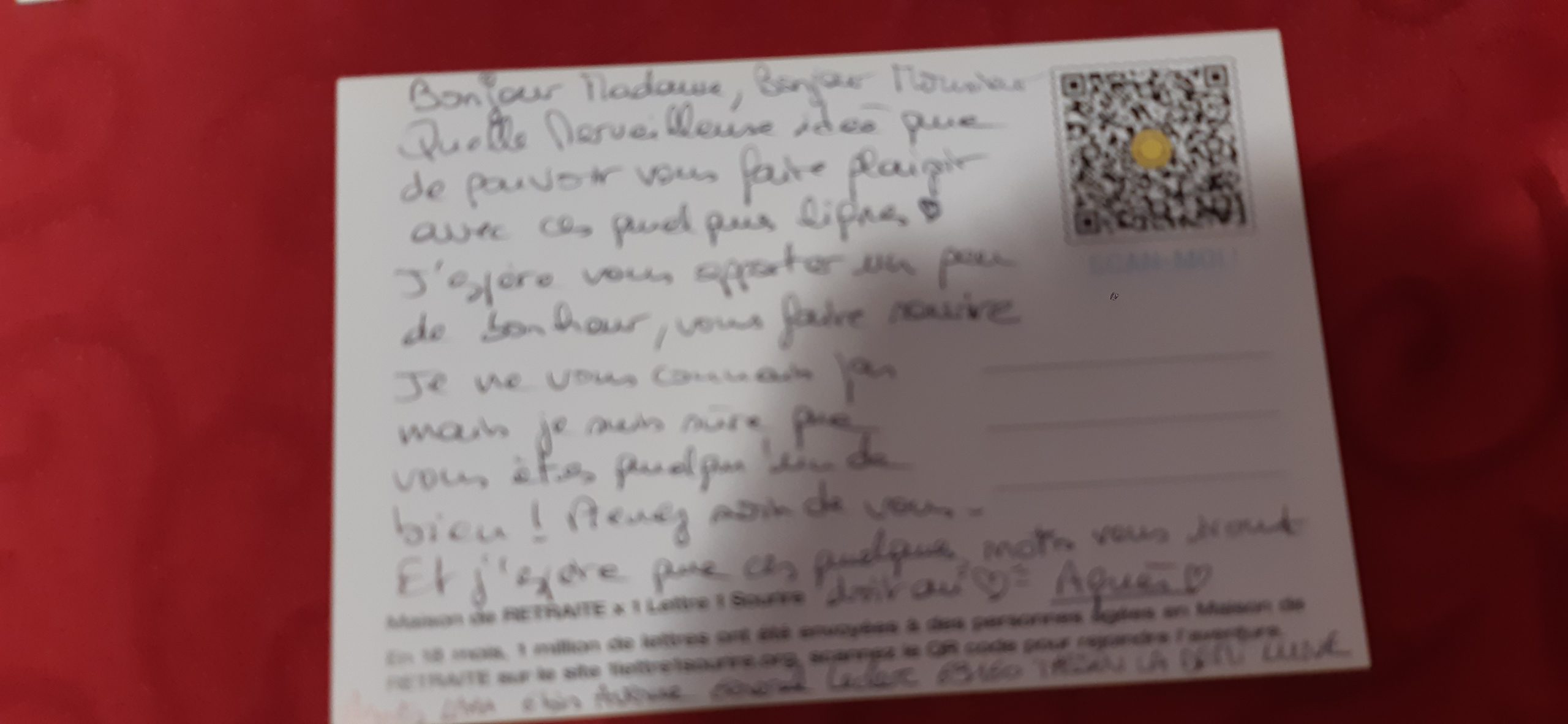 L’association « 1 lettre 1 sourire » est partenaire du film « Maison de Retraite » avec Gérard Depardieu, Kev Adams etc. Pendant toute la tournée d’avant-première de ce film, les spectateurs ont été invités à écrire des cartes postales chaleureuses pour les résidents des EHPADs. Les étudiantes Eva, Astrid, Doria et Thorya sont venues afin de transmettre et lire ces lettres. Nous avons tous passé un bon moment ensemble 😛
