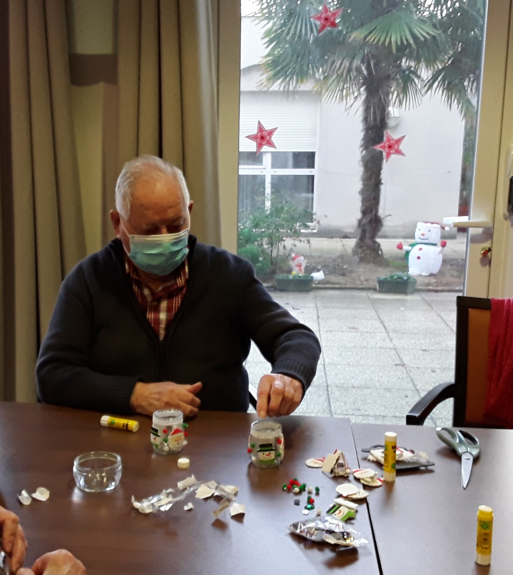 Afin de préparer l’échange avec les enfants de l’école Jean Giono, nos résidents ont créé des lumignons. Ils ont été très investis et ont pris beaucoup de plaisir. Ce fut un agréable moment de partage et de création !