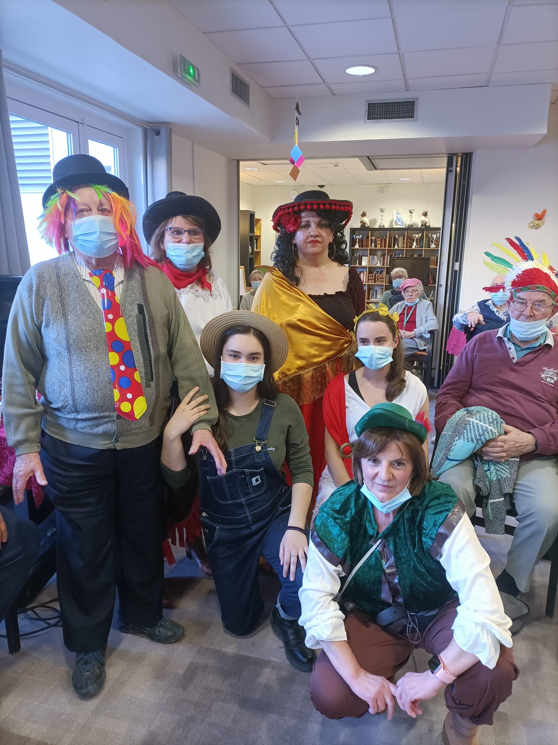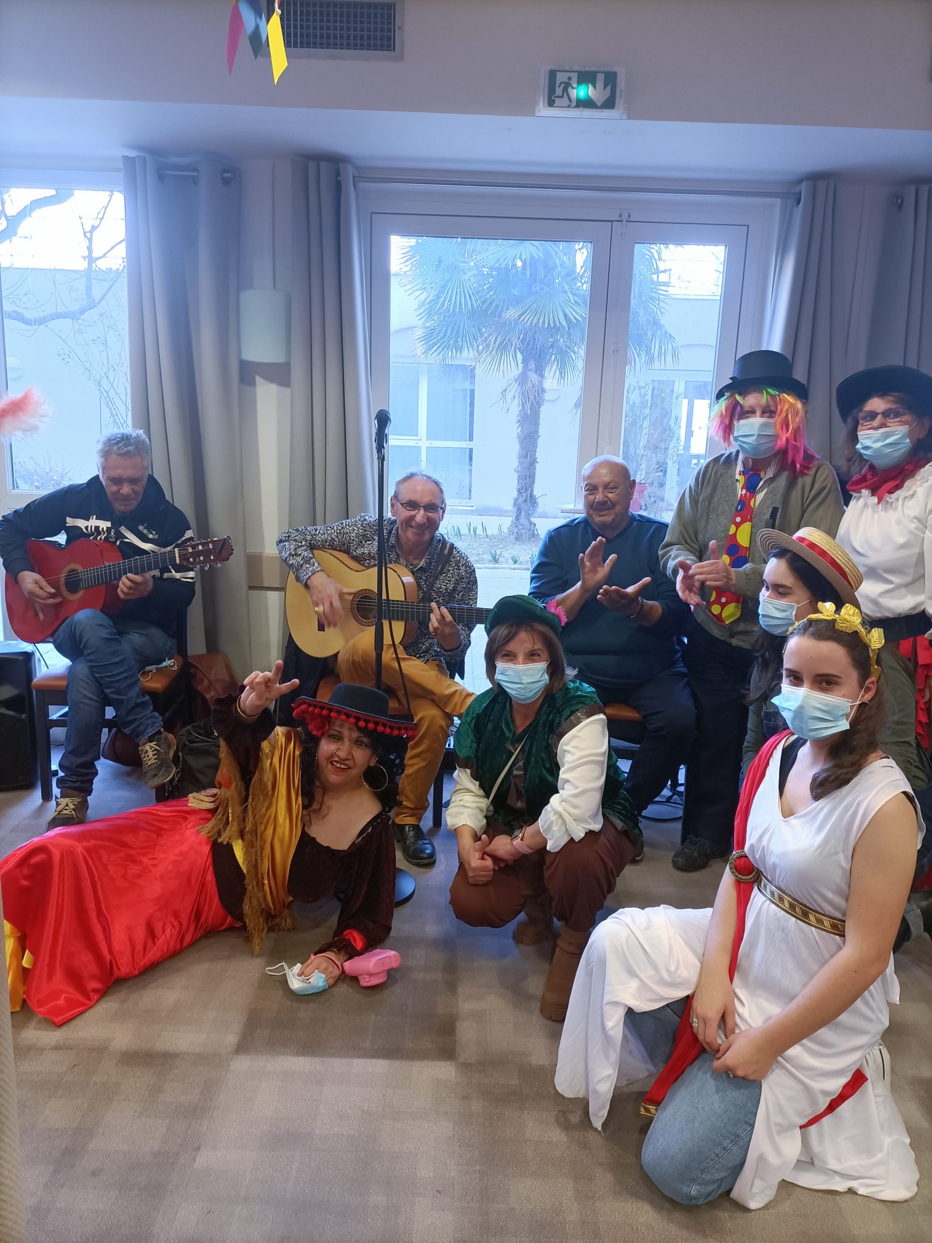 Le 1er mars, c’était la fête à Madeleine Caille ! Les résidents, les soignants et le personnel ont bien joué le jeu et se sont tous déguisés. Robin des bois et son cowboy étaient au rendez-vous. A cette occasion, nous avons également souhaité les anniversaires du mois. Afin de célébrer le carnaval dans la joie et la bonne humeur, nous avons eu le plaisir de recevoir les Gypsies. Ensemble, nous avons dansé comme des fous, pris des photos souvenirs et bien ri. Pour le goûter, les résidents ont savouré généreusement des bugnes. Le carnaval fut une réussite !