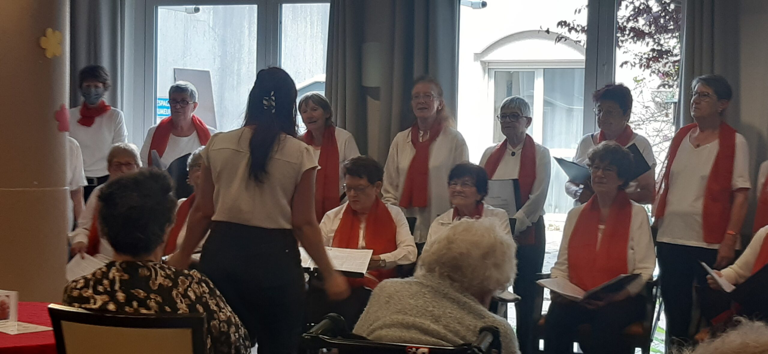 Nous avons accueilli La chorale « l’écho du 8ème » qui a interprété des chansons de leur registre. Elle est dirigée par Angela chef de cœur. C’est toujours un plaisir d’entendre les 30 choristes qui forment cette chorale. Les résidents ont apprécié ce moment de détente et de convivialité.