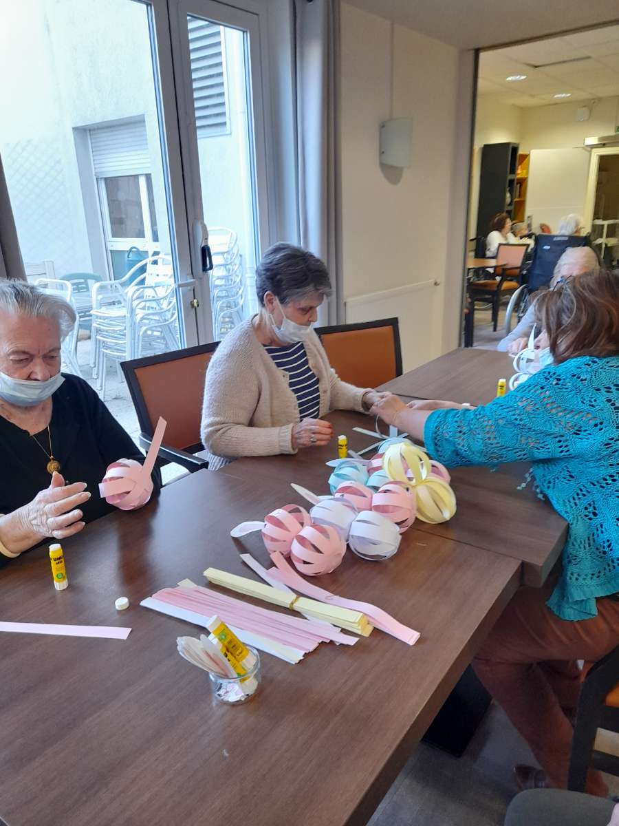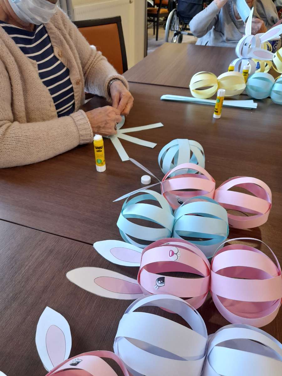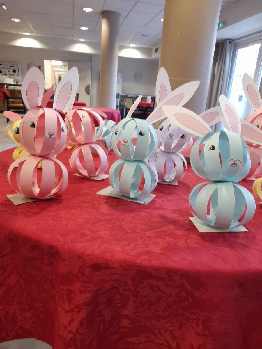 Faites sonner les cloches, Pâques approche !! C’est pour cette raison qu’avec l’aide des résidents nous avons confectionné des petits lapins pour une décoration haute en couleur. Chacun a laissé place à son imagination pour fabriquer ces petits compagnons. C’était une belle après-midi !