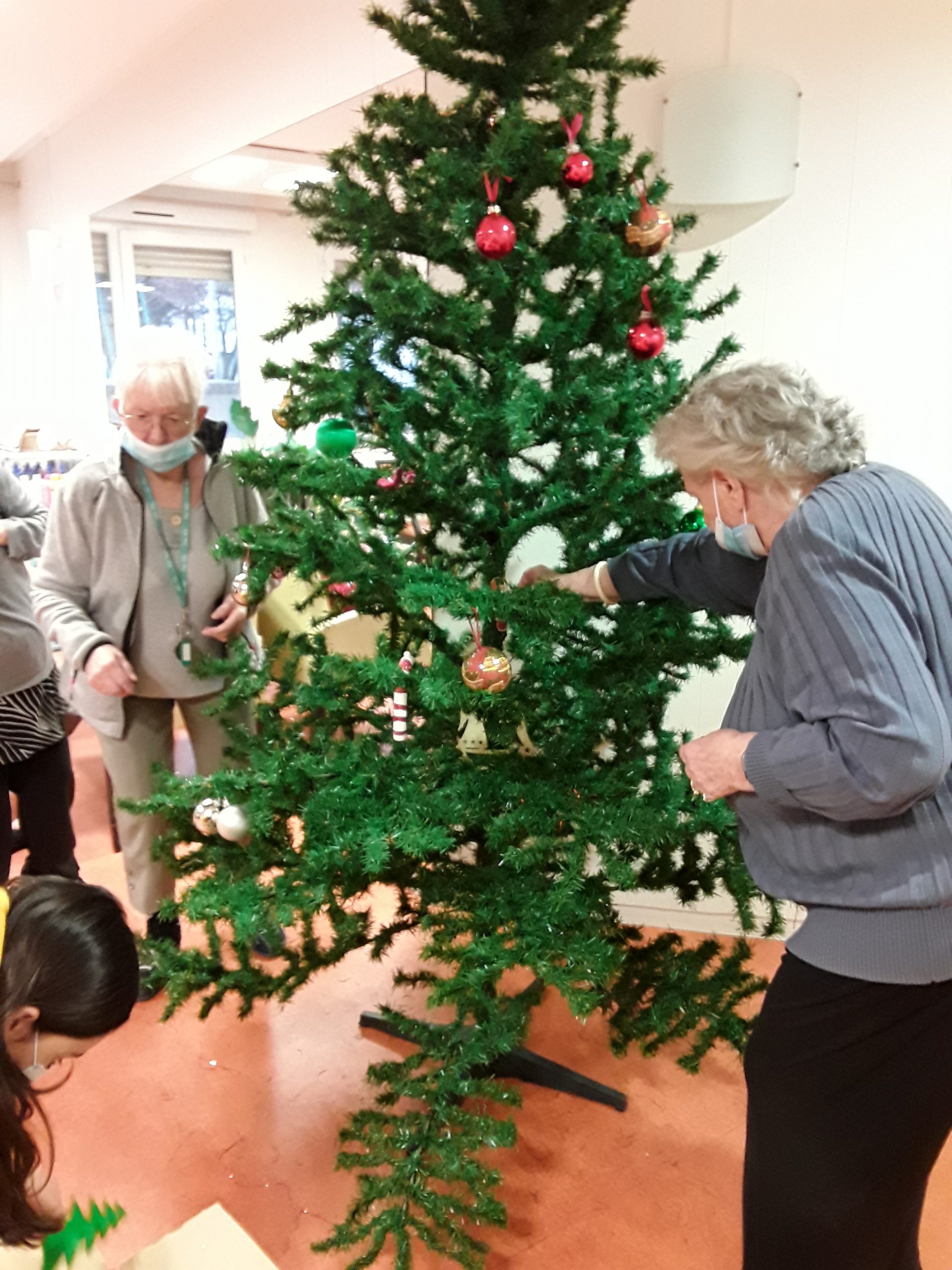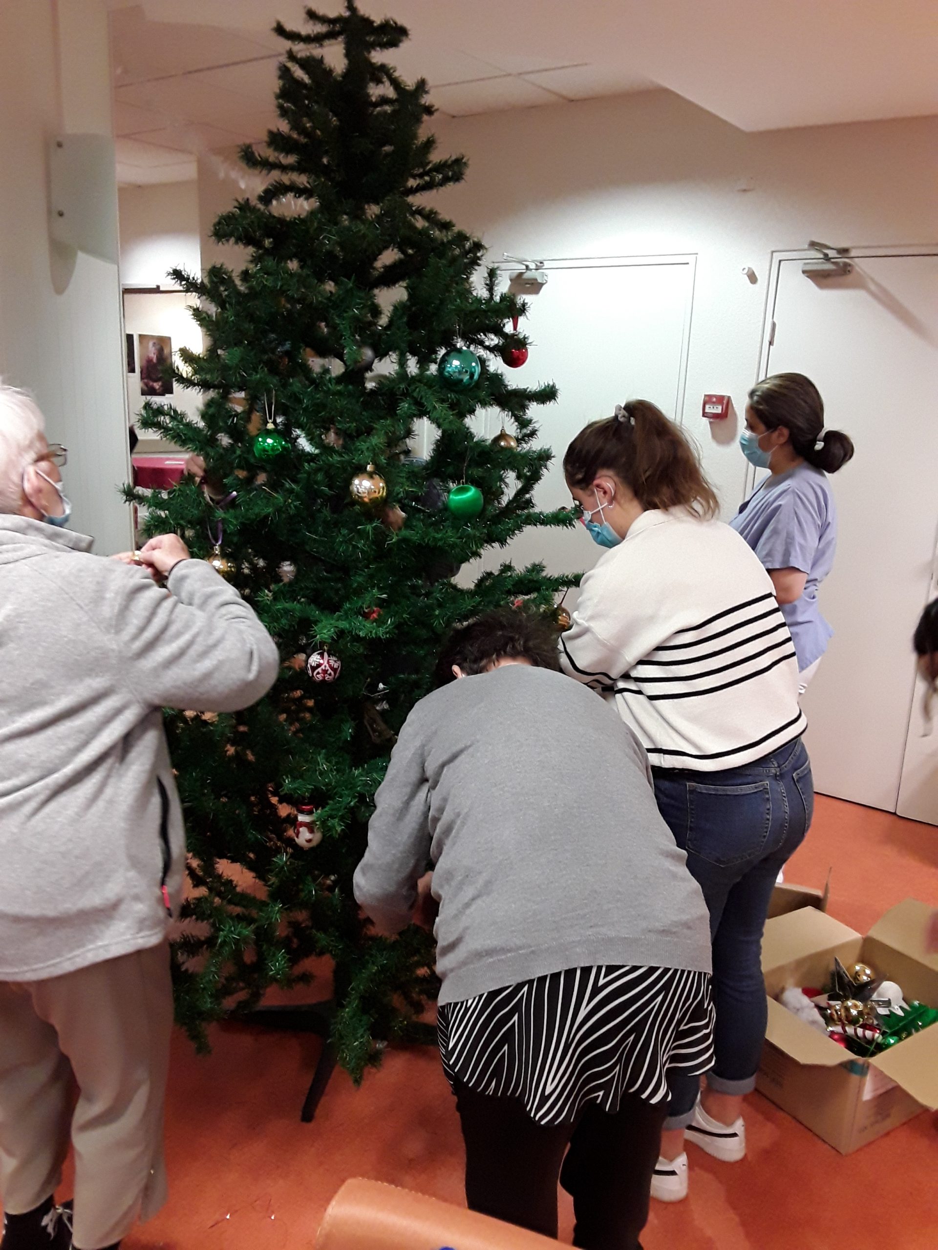 Le 1er décembre fut consacré à la décoration de l’EHPAD pour Noël. Nous avons convié les résidents à la décoration du sapin. Les résidents ainsi que l’animatrice, 2 volontaires en service civique et les aides soignantes ont pris plaisir à se mettre dans l’ambiance de Noël. Ce fut un magnifique moment de partage !