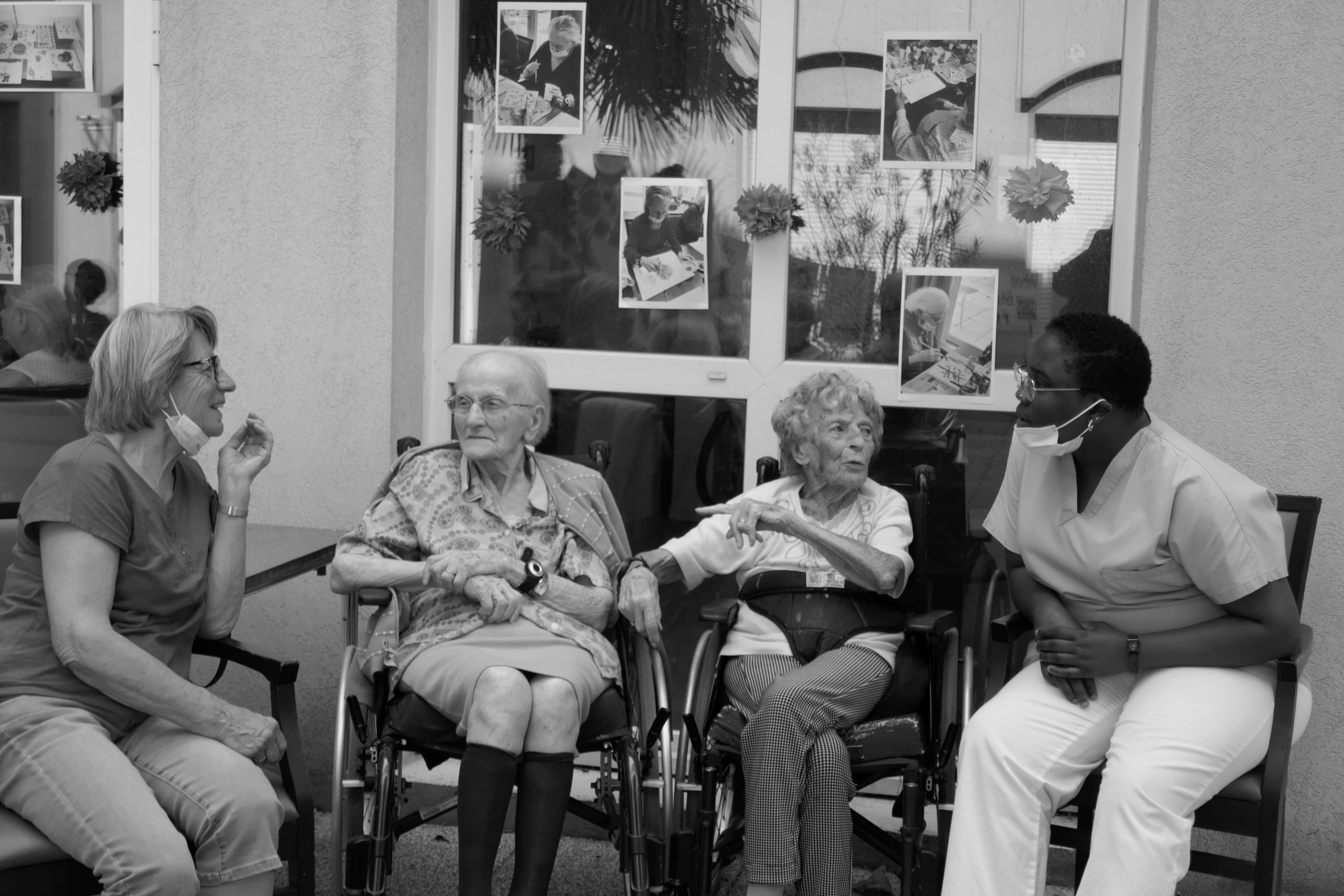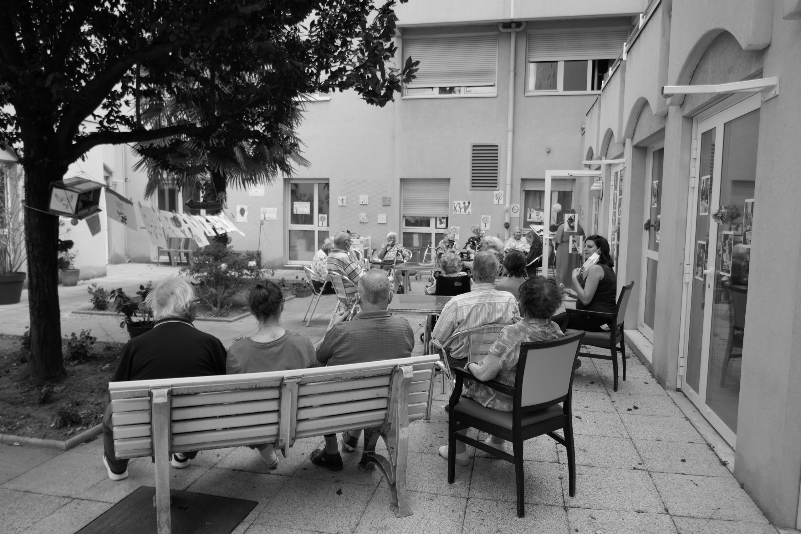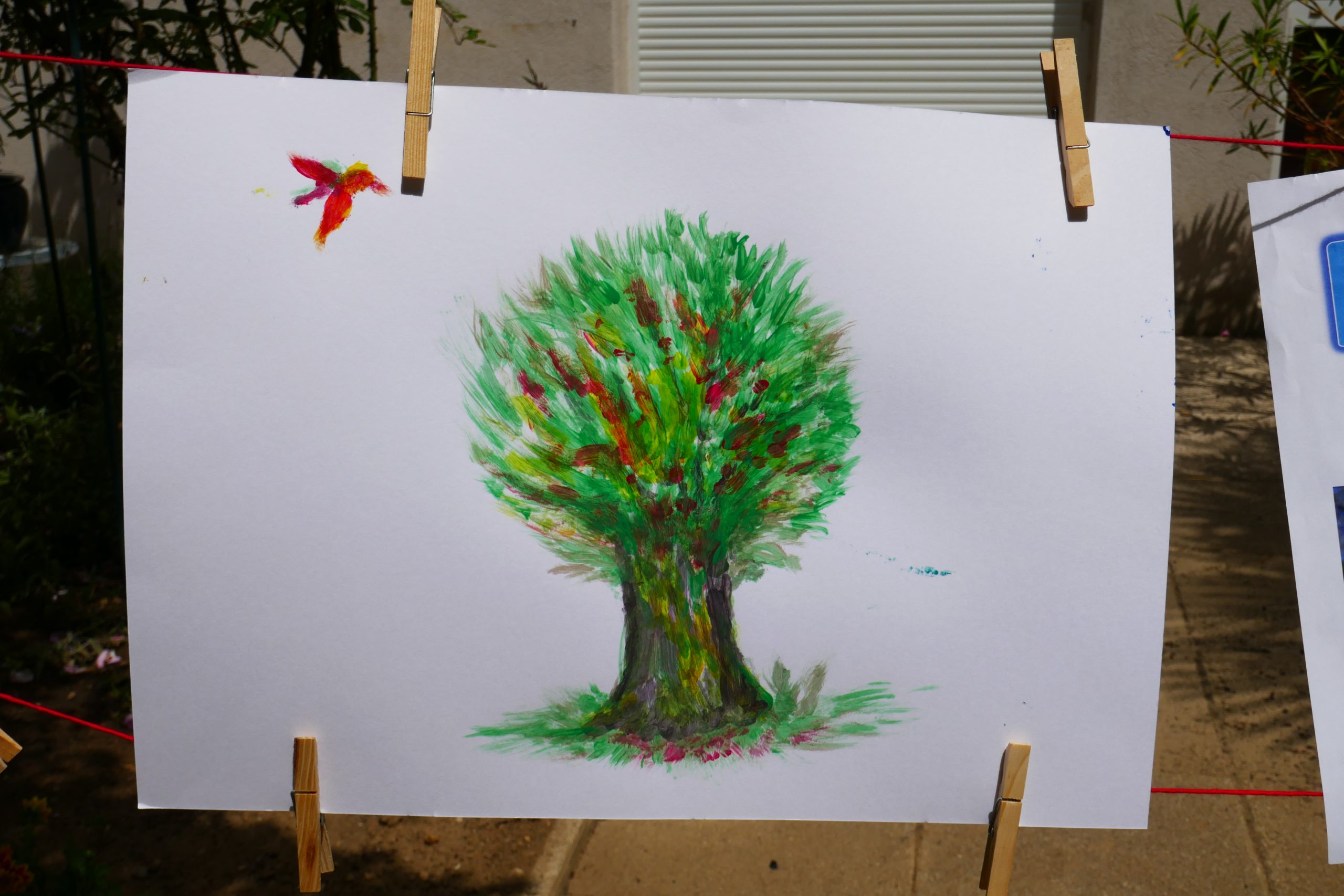 Enfin ! il est venu le temps de la fête du jardin ! Avec toutes les œuvres que les résidents ont réalisé tout au long de l’année (peinture, dessin, fleurs en papier crépon…), nous avons pu installer une belle exposition. Des photos prisent pendant les ateliers étaient affichées pour montrer à quel point les esprits créatifs de Madeleine Caille se sont donné du mal !