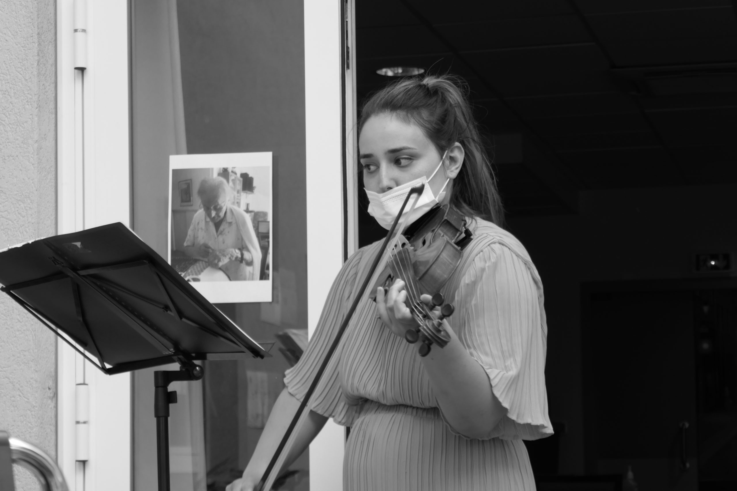 Avec le soleil qui brillait haut dans le ciel, les résidents se sont rafraichis avec des glaces. Pour égayer le tout, nous avons eu la chance de recevoir Rebecca, une violoniste. C’était un moment où tout le monde était réuni, pour rire et se relaxer. La musique en a ému certains, d’autres ont dansé et chanté.