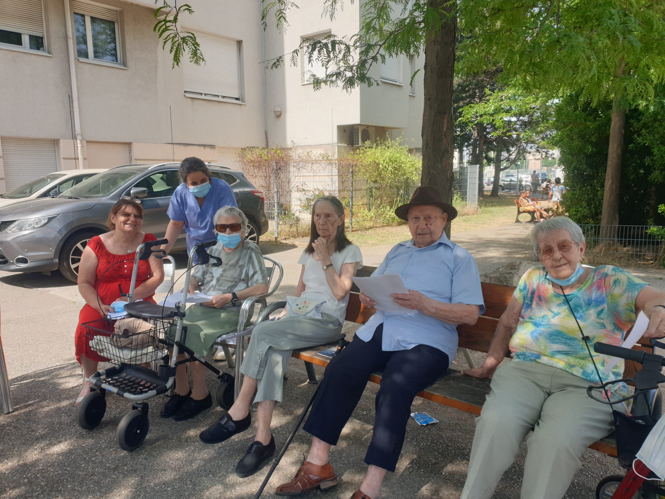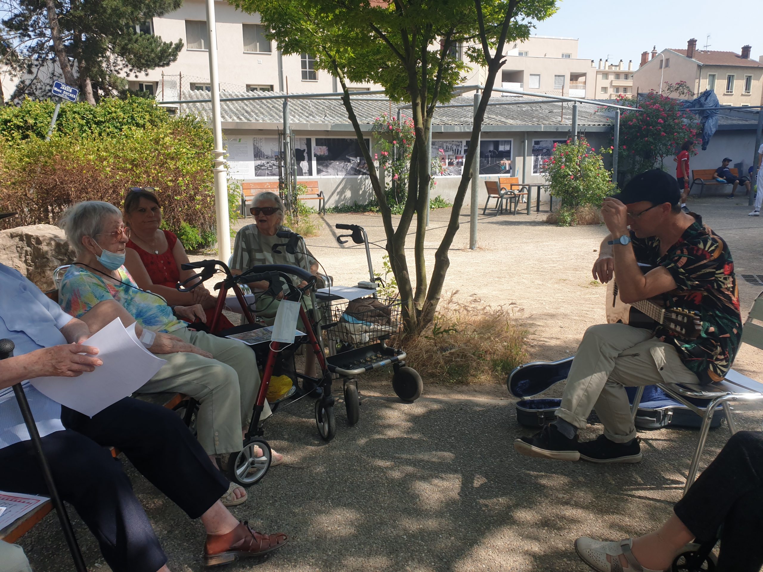 Les résidents ont eu 2 séances de répétition avec Florence Meyer, la responsable de l’association « La parole de » et Fred, musicien, pour participer à la fête du quartier. Celui-ci était animé avec le défilé des enfants de l’école « Jean Giono » et avec le groupe africain « NDAJE Rythme et culture « . Les CM2 ont chanté puis nos résidents ont lu des poèmes accompagnés de la guitare de Fred. La fête s’est terminée par du rap de la compagnie « La parole de ». Ce fut une belle fête avec tous les partenaires.