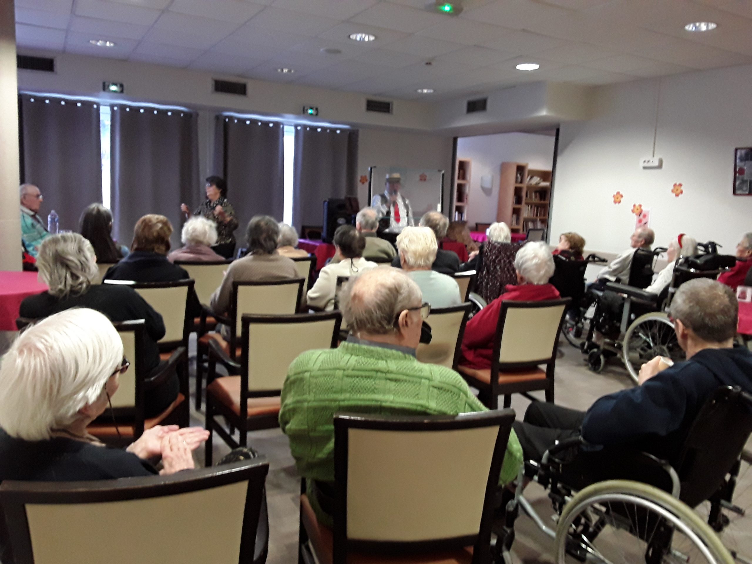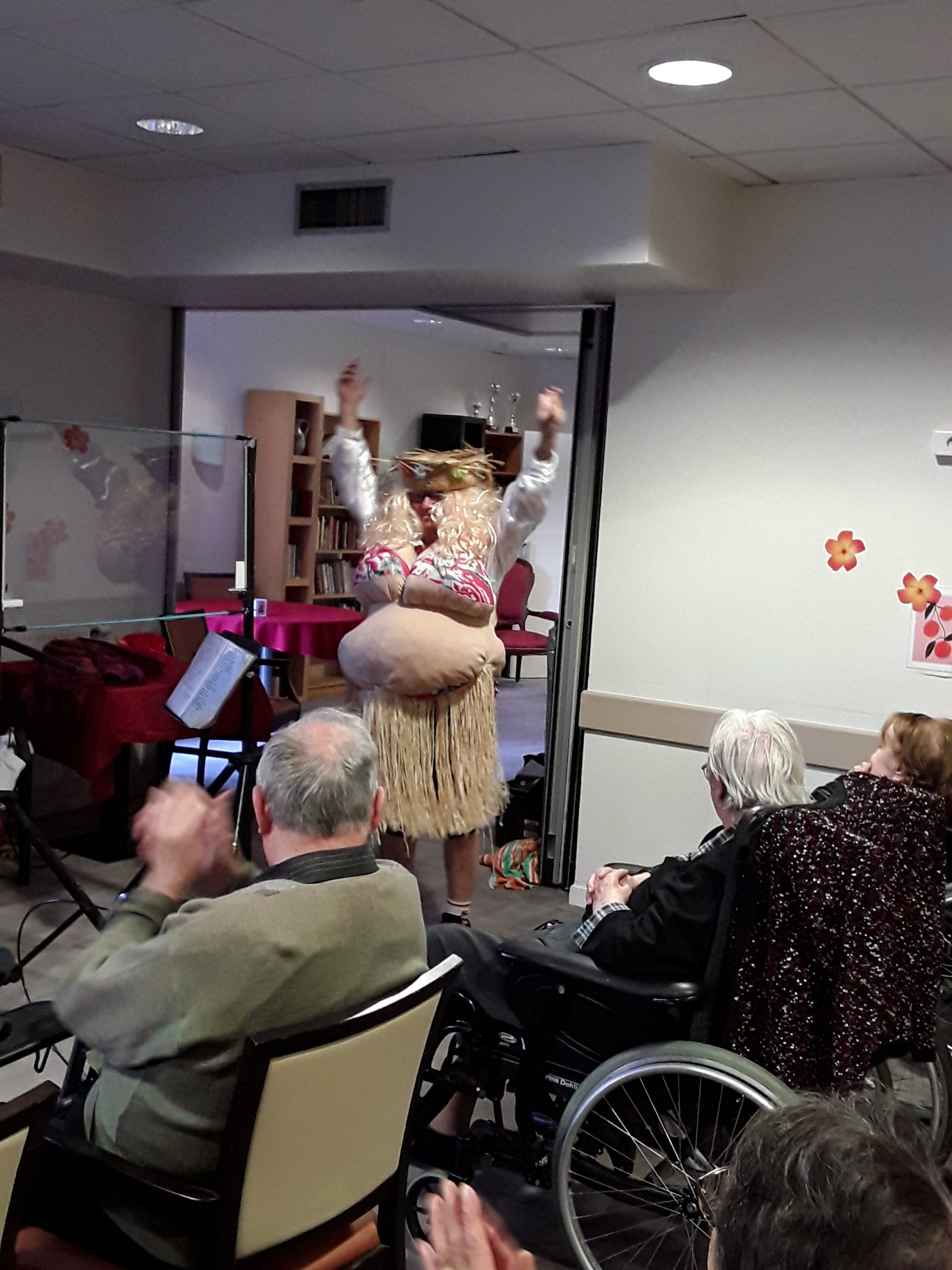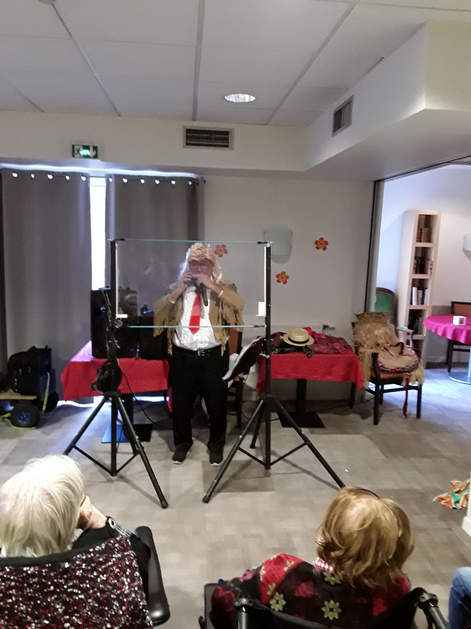 Cet après-midi, nous avons reçu la visite du talentueux Jeannot. Affublé de son costume et jouant de l’harmonica comme personne, il sait ravir nos oreilles ainsi que nos yeux ! Il sait amuser la galerie et nous faire passer de bons moments.