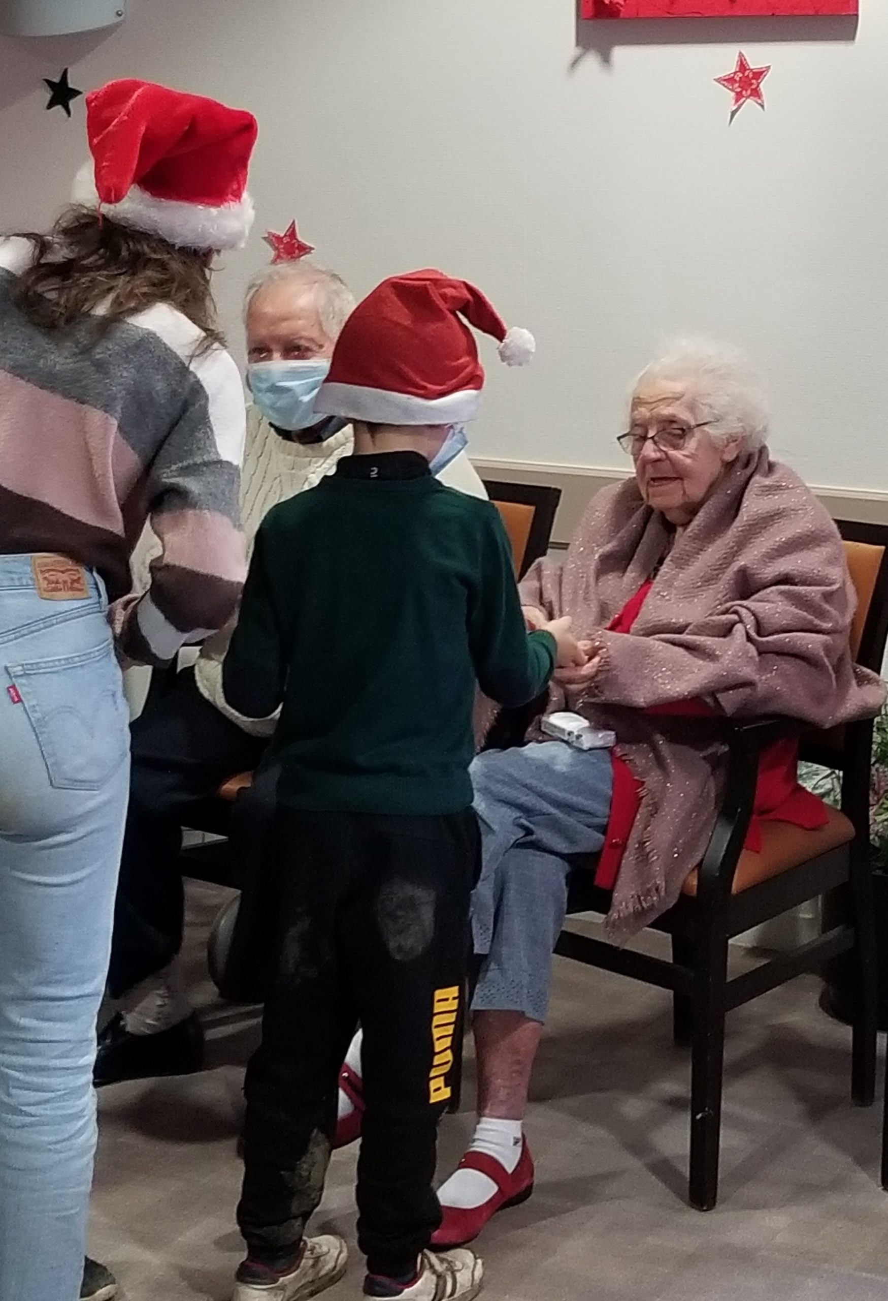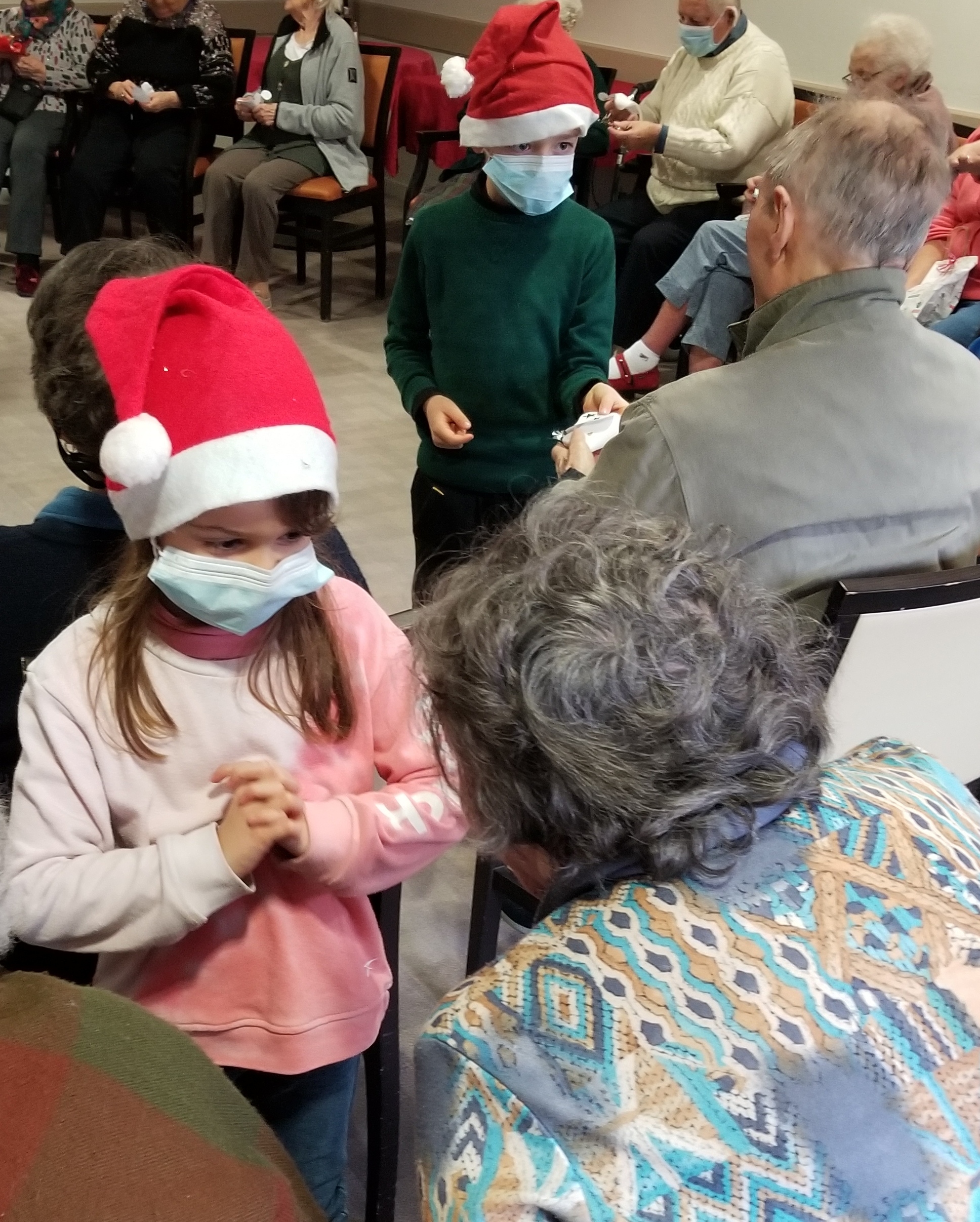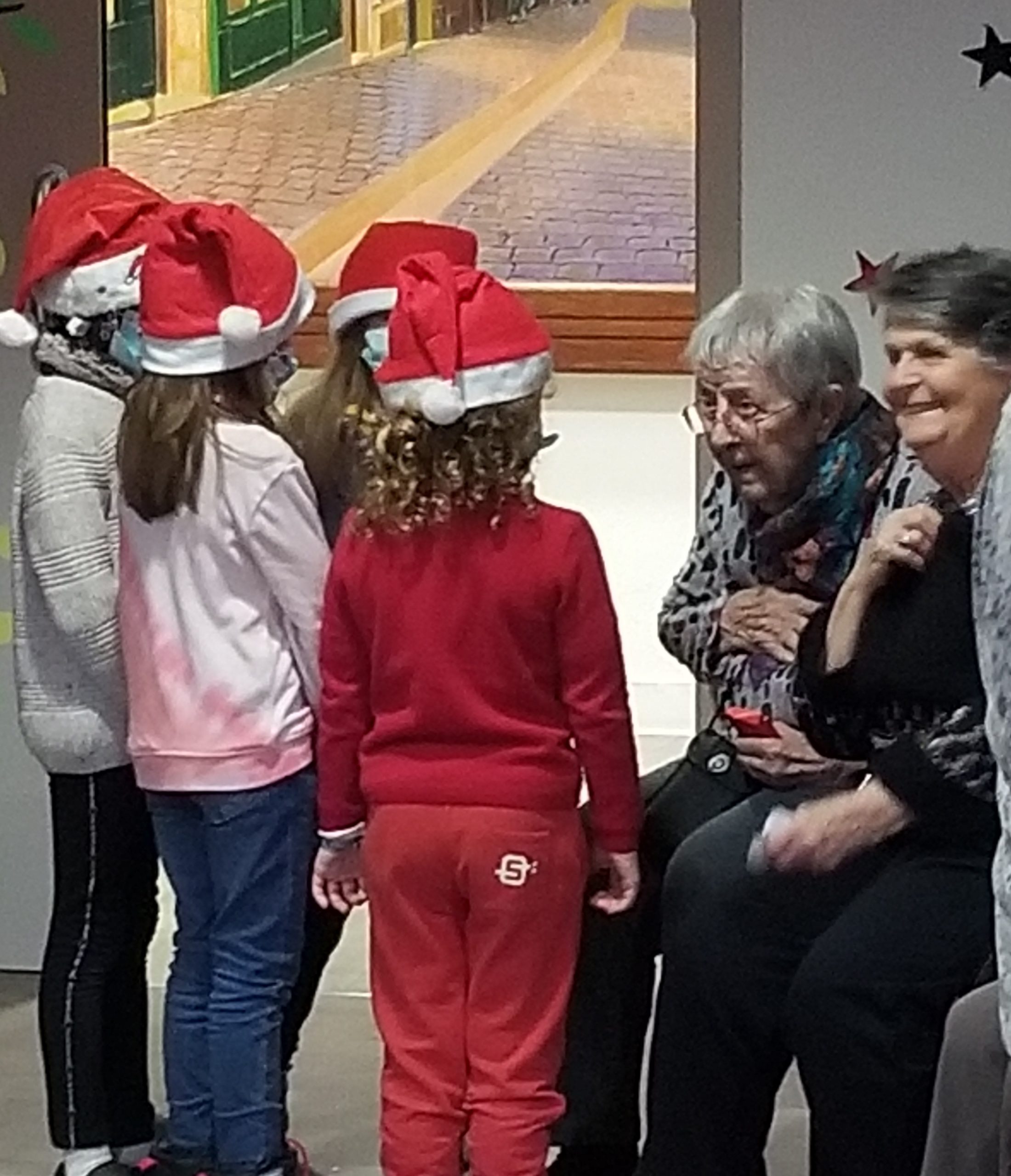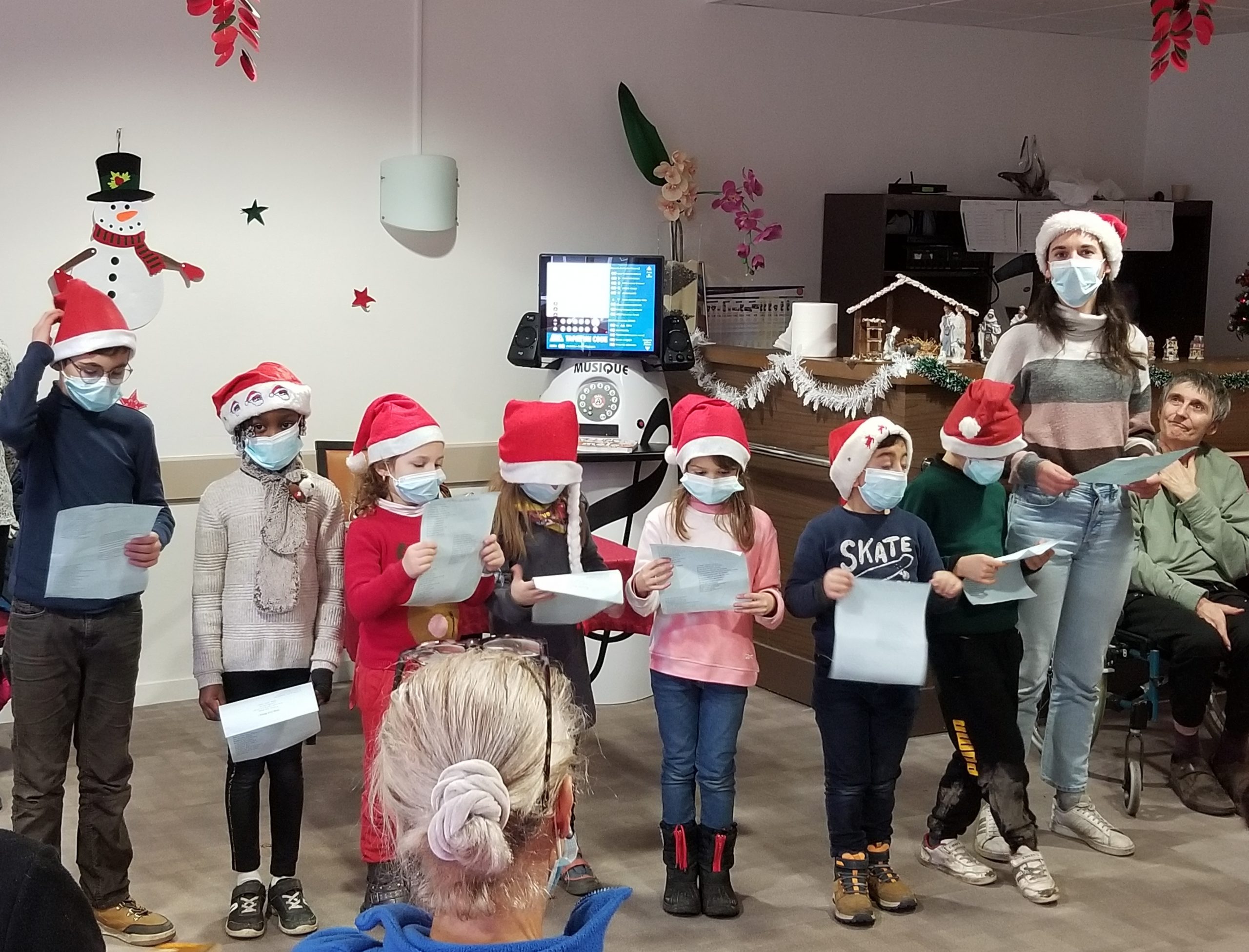 Mercredi, nous avons reçu la visite de ce qui semblait à premier abord être de petits lutins avec leurs jolis bonnets ! Mais c’était en fait les enfants du patronage de la paroisse « Saint jacques » qui sont venus chanter de belles chansons de Noel. Après leur prestation, nous avons pu échanger avec eux et partager des papillotes. Une belle façon de faire de nouvelles rencontres.