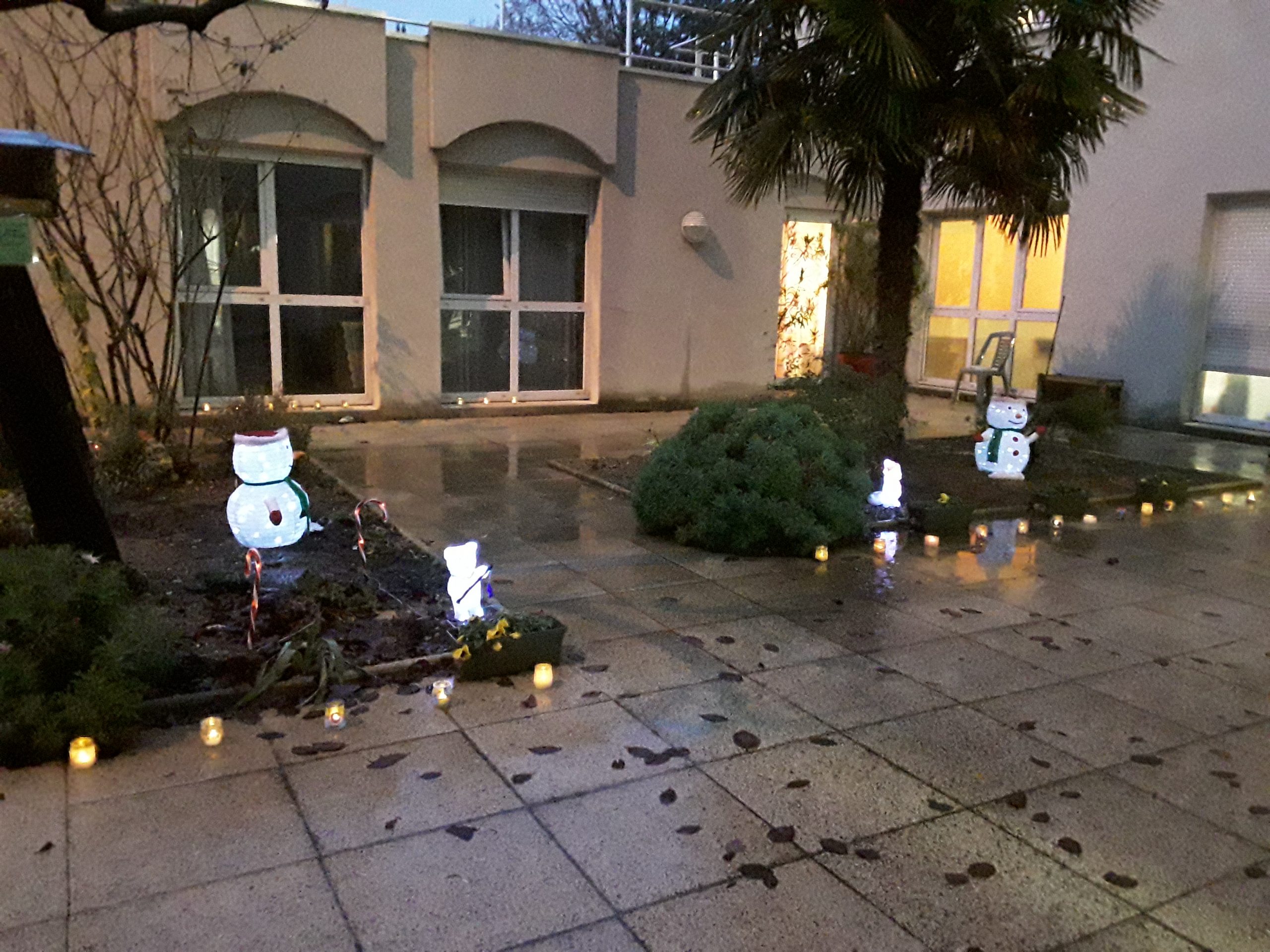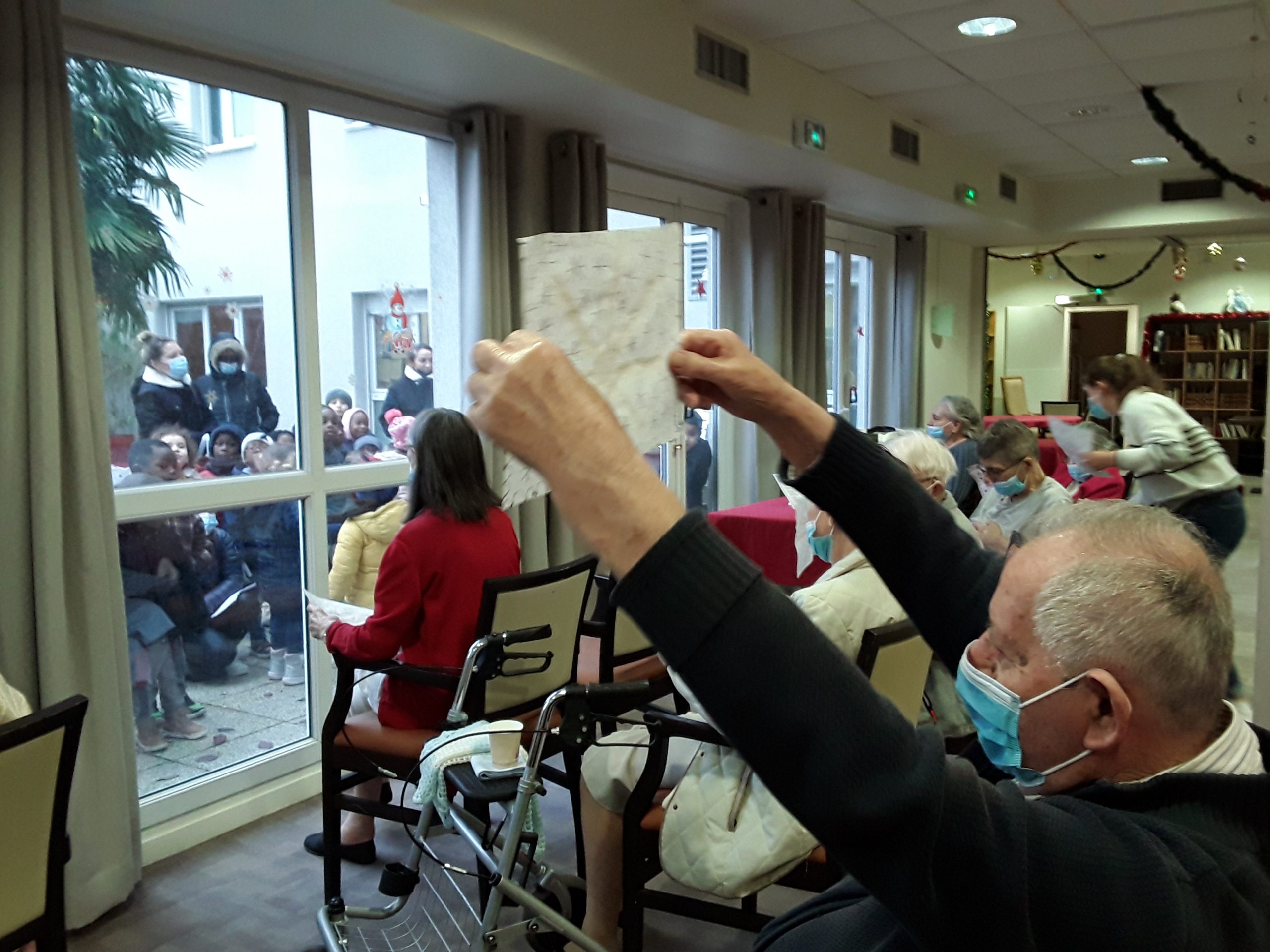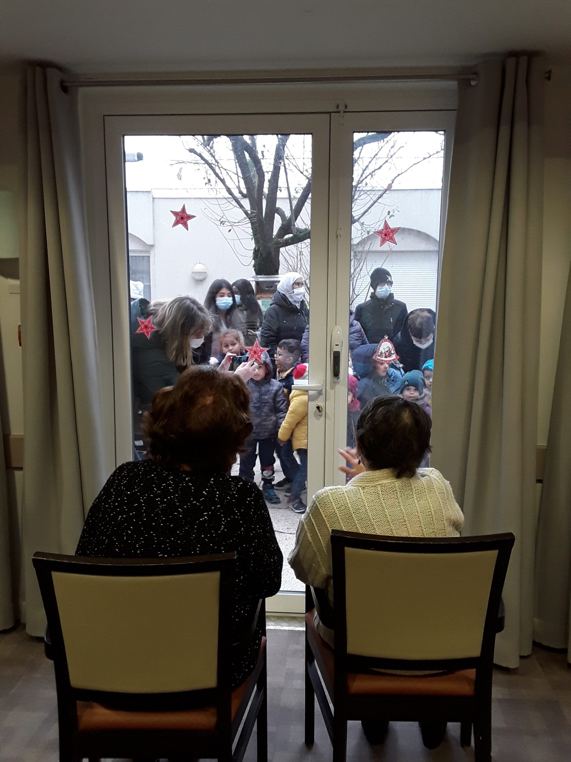 La mairie de Lyon 8e a eu l’idée d’un projet d’échange de lumignons intergénérationnel. C’est dans ce cadre que nous avons pu accueillir l’école maternelle Jean Giono, en mettant en place les règles de distanciation et d’hygiène adaptées, ils sont venus nous rendre visite afin de nous offrir des lumignons en cadeau. A travers les fenêtres de notre restaurant, nous avons installé nos résidents pour qu’ils puissent voir les enfants restés dehors dans le patio. Les élèves de maternelle nous ont interprété quelques chansons, et nous avons également eu la chance de recevoir leurs dessins. Nos résidents ont été particulièrement émus par ces enfants, qui ont pour certains fait resurgir quelques souvenirs. Enfin, l’EHPAD a été joliment décoré et illuminé le soir du mardi 8 décembre.